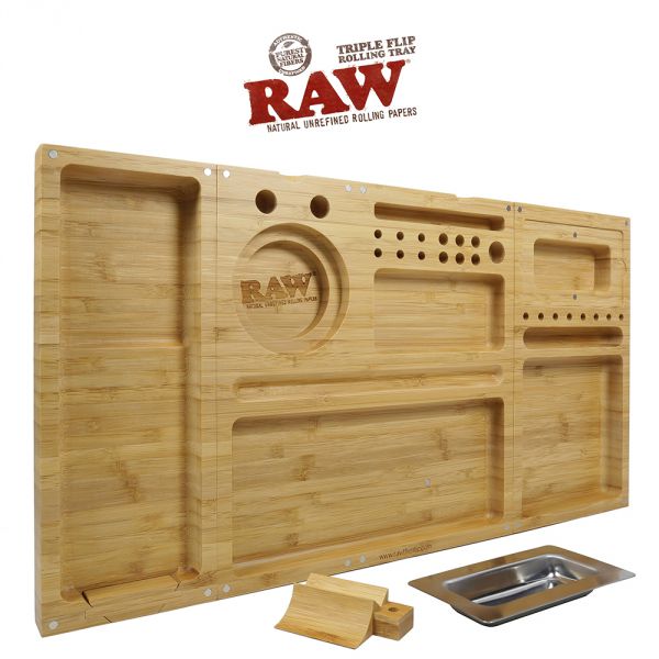Raw Triple Flip Bamboo Rolling Tray Skyline Vape Smoke Lounge Skyline Vape Smoke Lounge